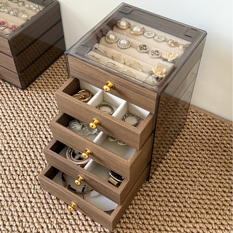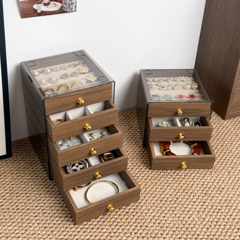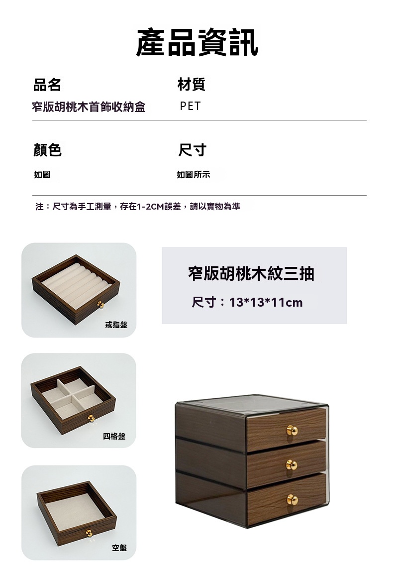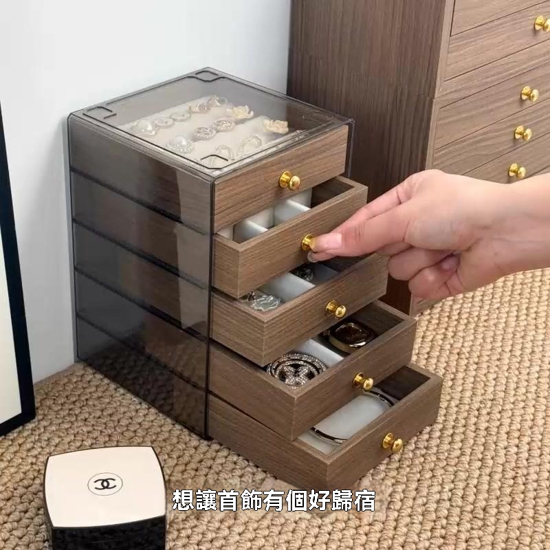 小身材大容量!「胡桃木絨布首飾盒」多功能分區收納~戒指、耳環一目了然,妝台質感瞬間升級